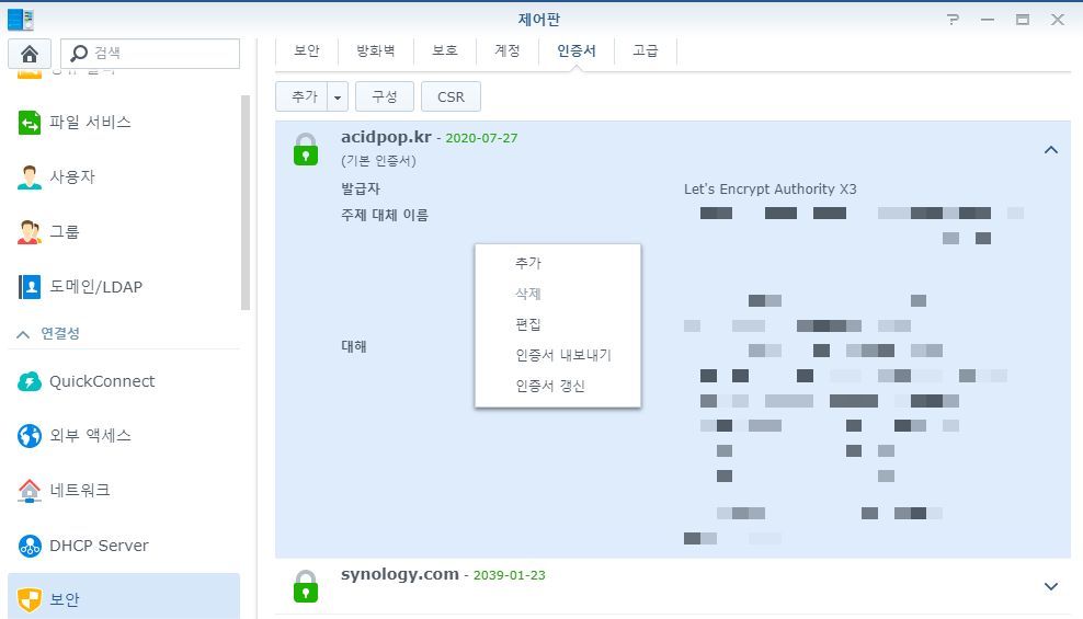 1. Synology NAS 에서 인증서 내보내기