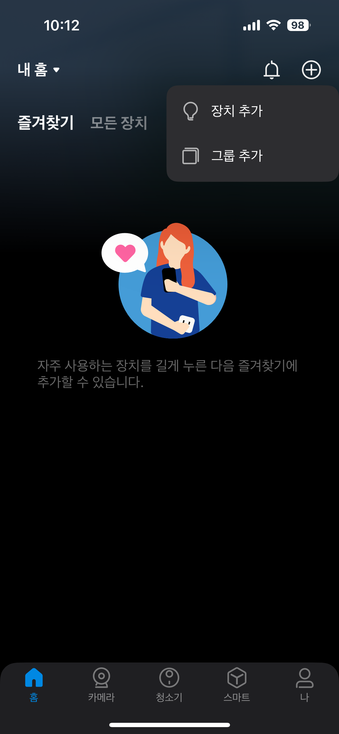 앱에 로그인 후 아래와 같은 순서로 장치 추가를 진행 하였다.
