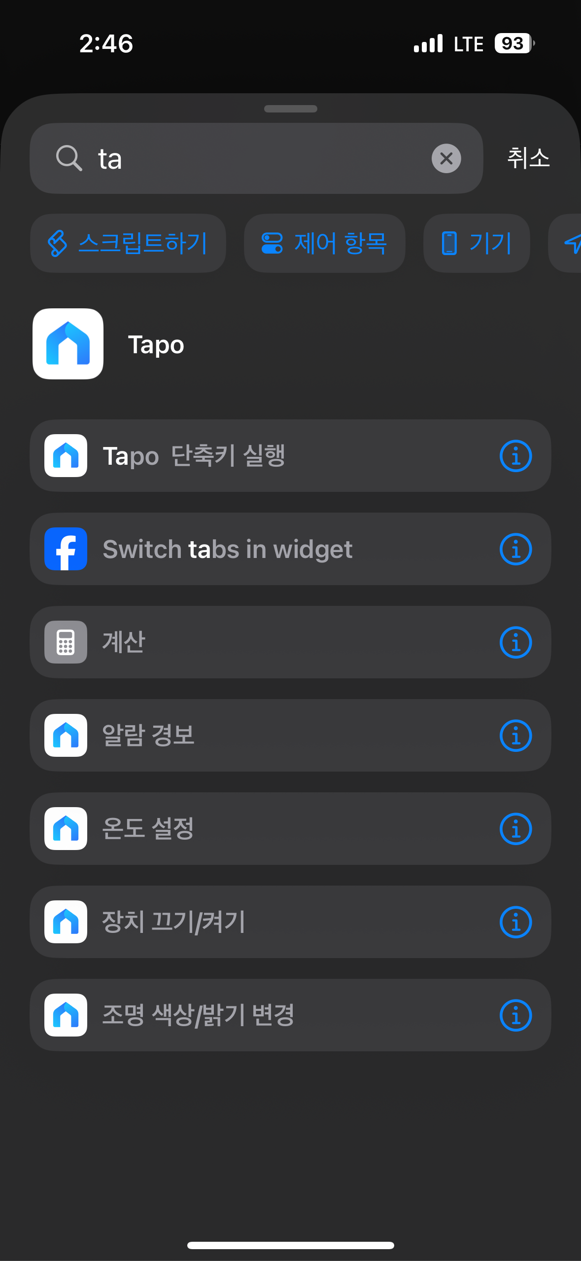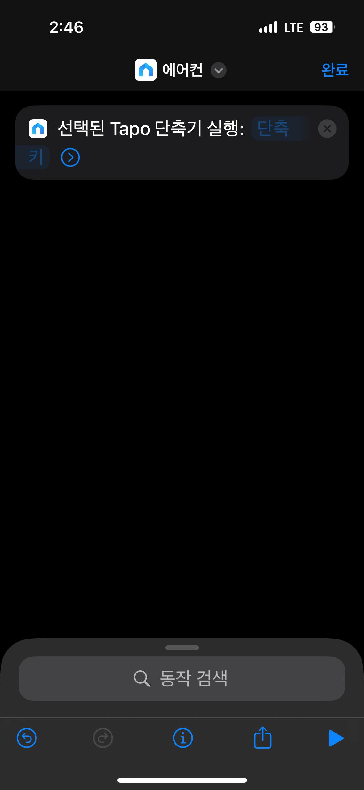 이번에는 Tapo 단축키 실행 기능을 단축어에서 시도해보았다.