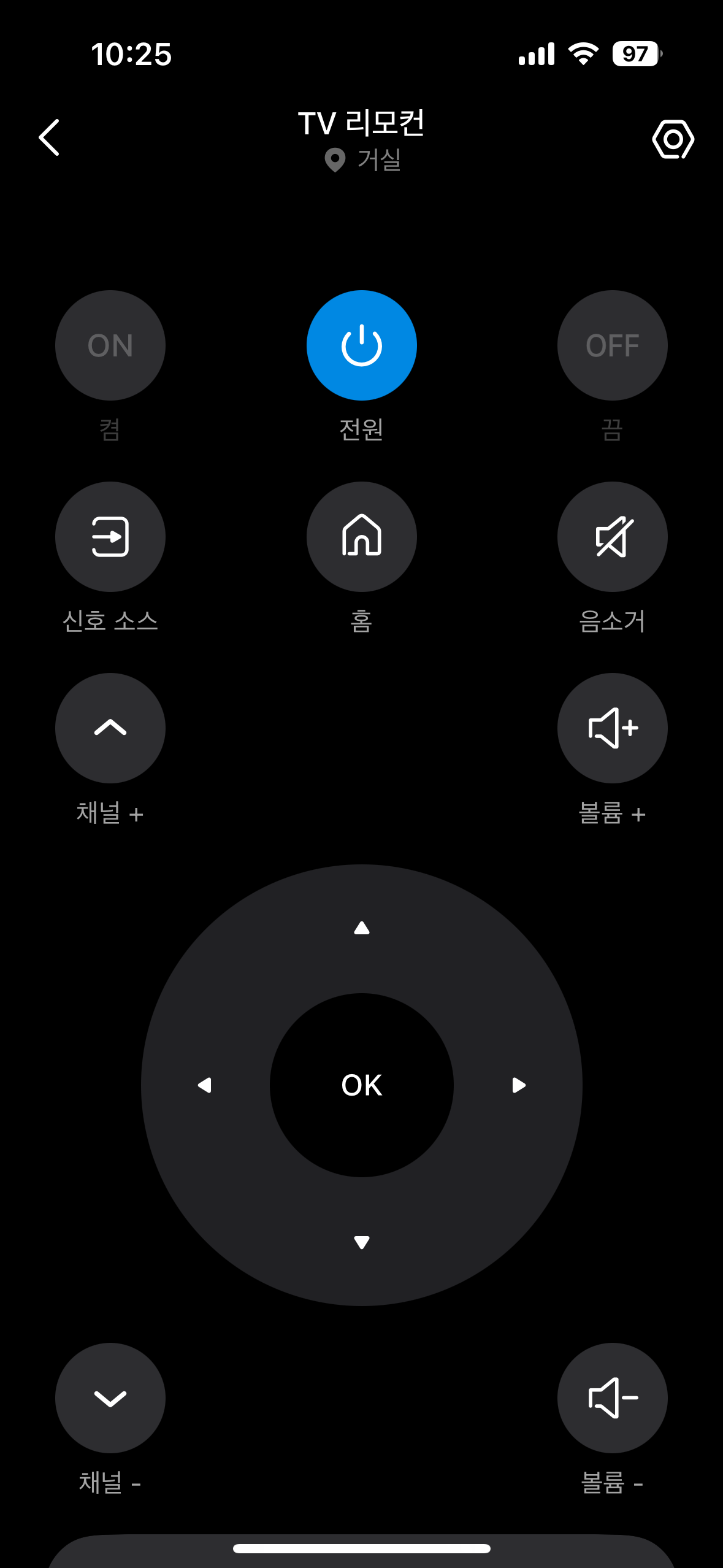 다만 LG TV 리모컨의 채널, 볼륨 버튼을 작동하지 않았으며, 하단의 상하좌우 버튼을 이용해서 채널, 볼륨 조절이 가능했다.