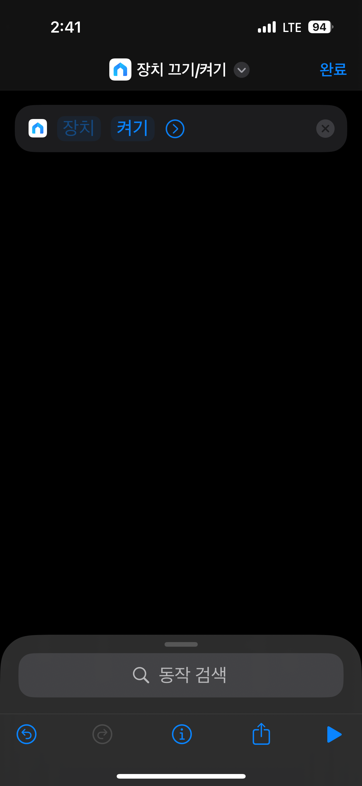 아이폰 단축어 앱 -> 단축어 생성 -> Tapo -> 장치 끄기/켜기 를 선택 후 장치를 선택하려고 보면 아무런 장치도 표시되지 않는다.